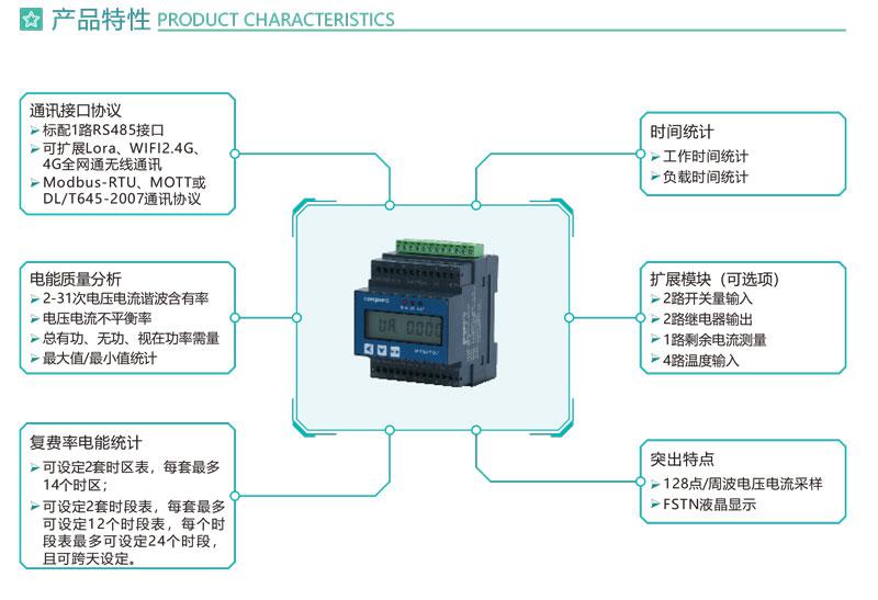 6.標配1路RS485通訊接口,Modbus-RTU、DL/T645-2007通信協議