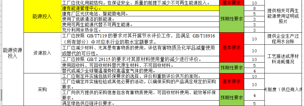 其中在綠色工廠申報的一級標準中有能源資源投入這一方面的內容,包含有建設能源管理中心這一項。對于建設有能源管理中心的企業,在申報綠色工廠時會有加分。