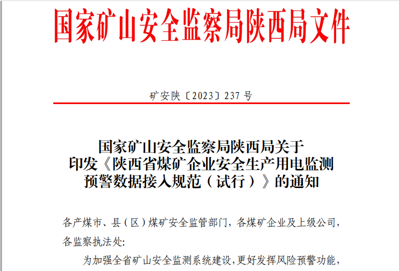 陜西省煤礦企業(yè)安全生產(chǎn)用電監(jiān)測(cè)預(yù)警數(shù)據(jù)接入通知